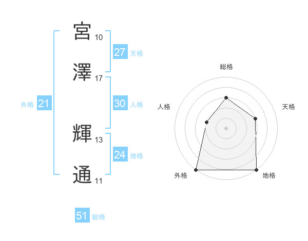 宮澤 輝通さんを姓名の画数から五運を鑑定