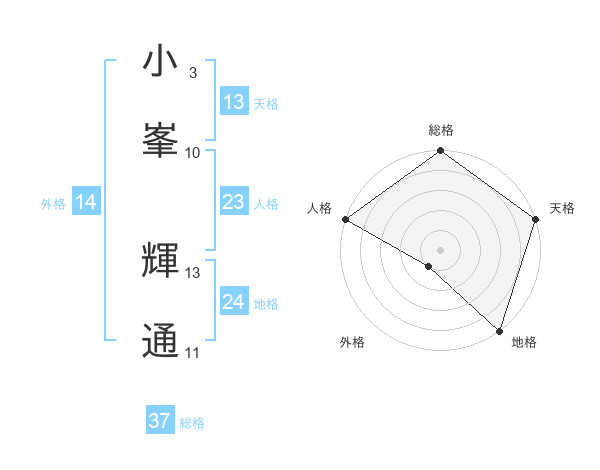 小峯 輝通さんを姓名の画数から五運を鑑定