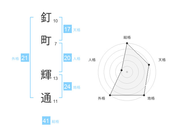 釘町 輝通さんを姓名の画数から五運を鑑定