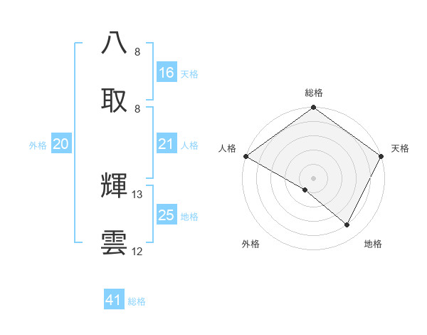 八取 輝雲さんを姓名の画数から五運を鑑定