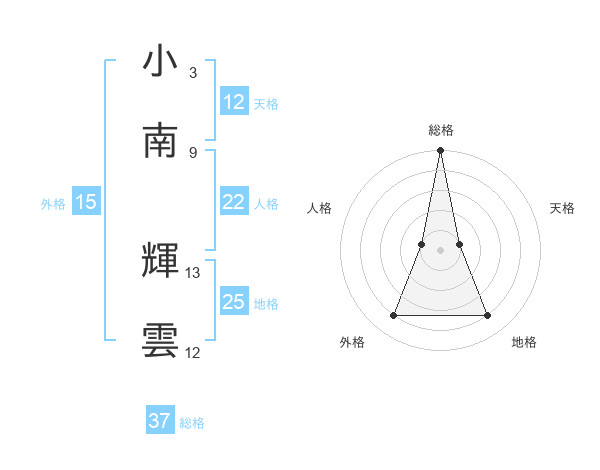 小南 輝雲さんの総格は37画の5点!