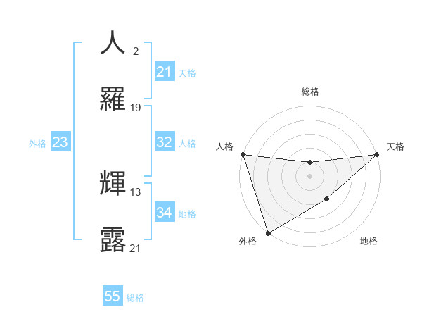 人羅 輝露さんの天格は21画の5点!
