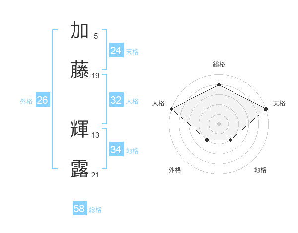 加藤 輝露さんを姓名の画数から五運を鑑定