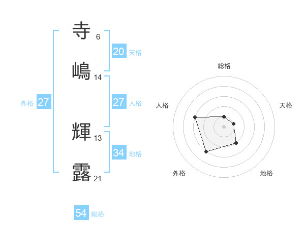 寺嶋 輝露さんを姓名の画数から五運を鑑定