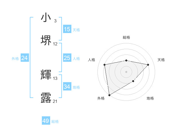 小堺 輝露さんを姓名の画数から五運を鑑定