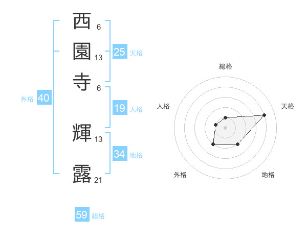 西園寺 輝露さんを姓名の画数から五運を鑑定