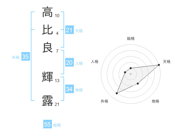 高比良 輝露さんを姓名の画数から五運を鑑定