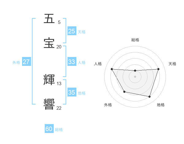 五宝 輝響さんの総格は60画の1点!