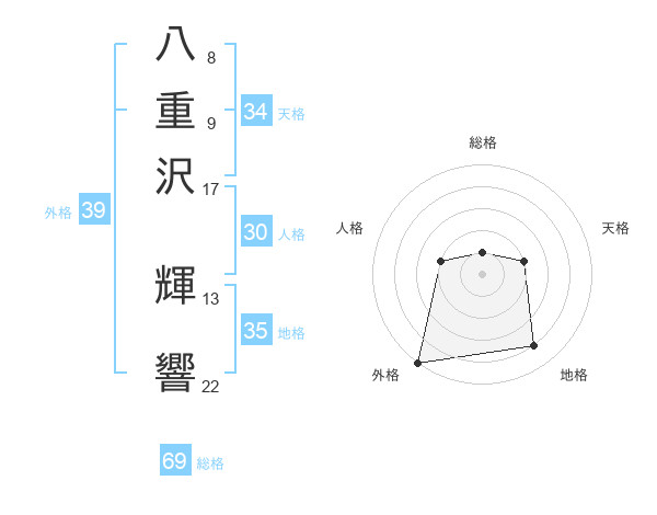 八重沢 輝響さんを姓名の画数から五運を鑑定
