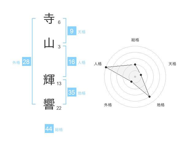 寺山 輝響さんの総格は44画の2点!