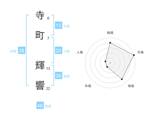 寺町 輝響さんの総格は48画の4点!