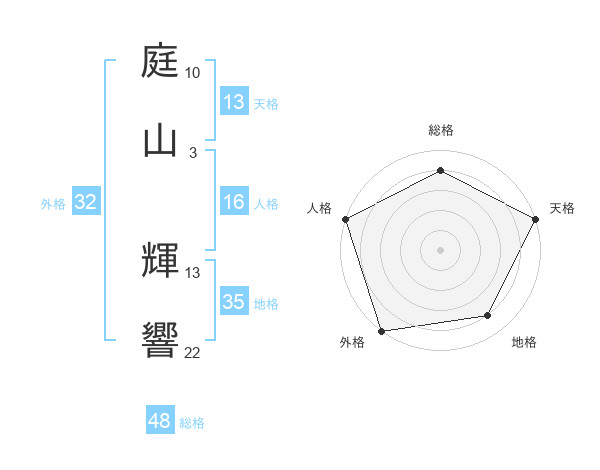 庭山 輝響さんを姓名の画数から五運を鑑定