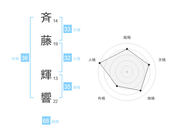 斉藤 輝響さんの総格は68画の4点!
