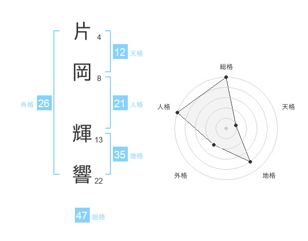 片岡 輝響さんの総格は47画の5点!