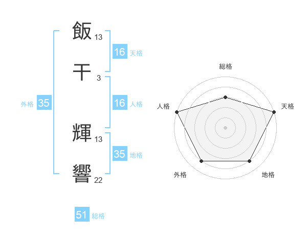 飯干 輝響さんの総格は51画の3点!