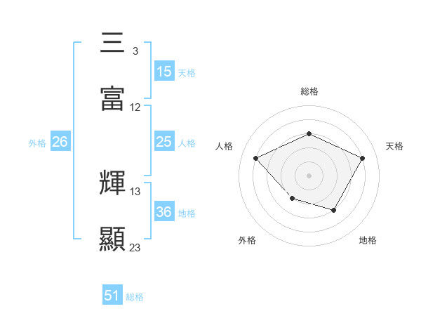 三富 輝顯さんの総格は51画の3点!