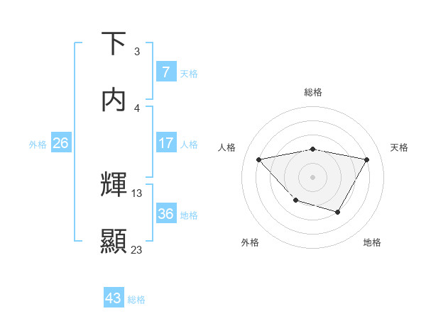 下内 輝顯さんを姓名の画数から五運を鑑定