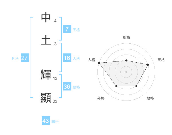 中土 輝顯さんを姓名の画数から五運を鑑定