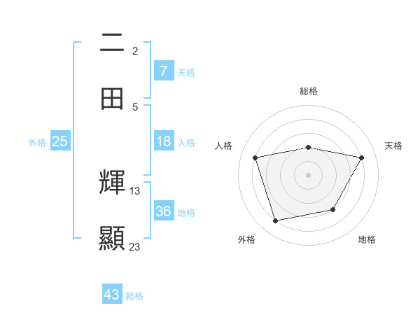 二田 輝顯さんの外格は25画の4点!