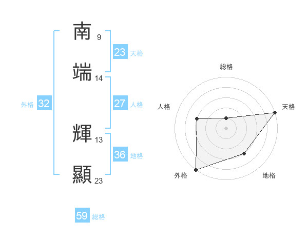 南端 輝顯さんの天格は23画の5点!