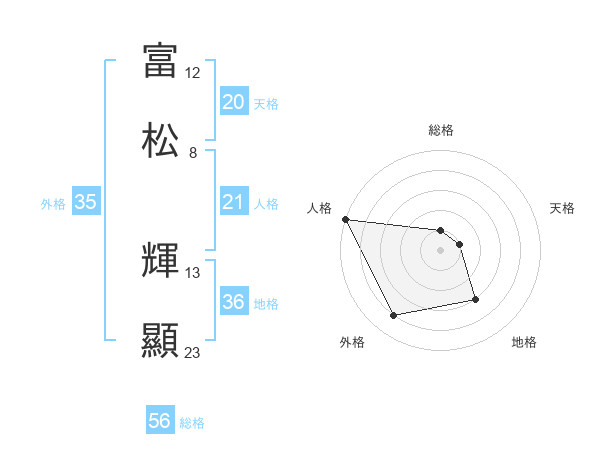 富松 輝顯さんの総格は56画の1点!