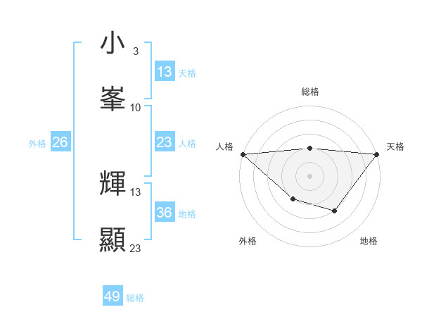 小峯 輝顯さんの天格は13画の5点!