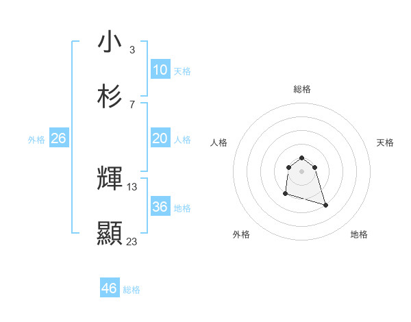 小杉 輝顯さんの総格は46画の1点!