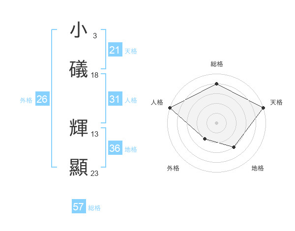 小礒 輝顯さんの総格は57画の4点!