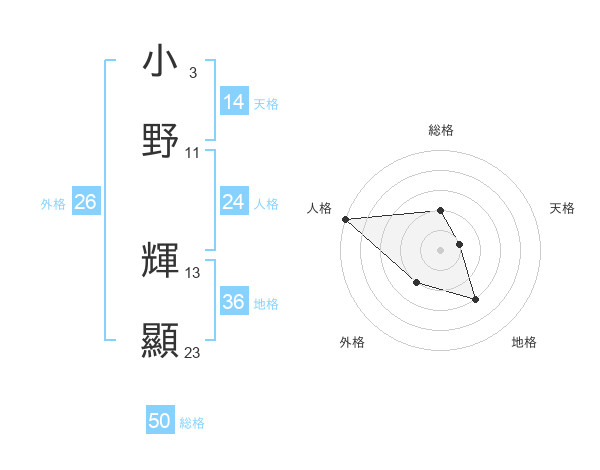 小野 輝顯さんを姓名の画数から五運を鑑定