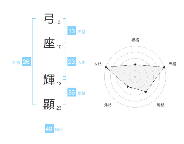 弓座 輝顯さんを姓名の画数から五運を鑑定