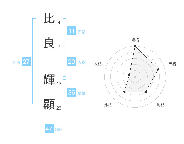 比良 輝顯さんの総格は47画の5点!