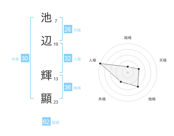 池辺 輝顯さんを姓名の画数から五運を鑑定