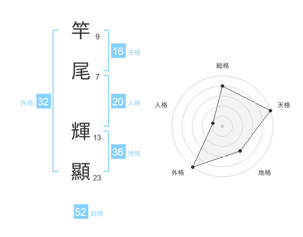 竿尾 輝顯さんの総格は52画の4点!