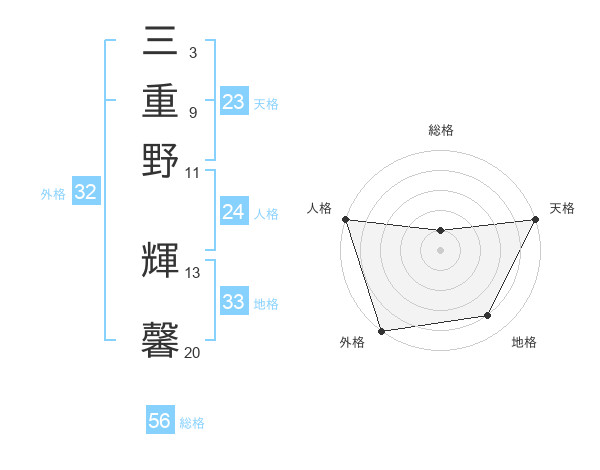 三重野 輝馨さんの外格は32画の5点!