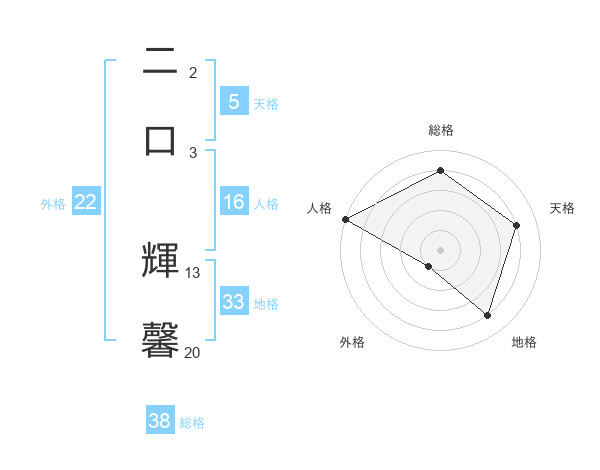 二口 輝馨さんを姓名の画数から五運を鑑定