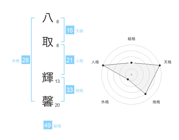 八取 輝馨さんの総格は49画の2点!