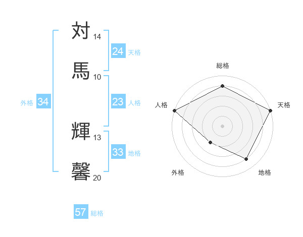 対馬 輝馨さんの総格は57画の4点!