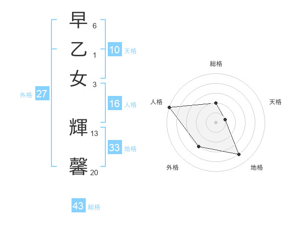 早乙女 輝馨さんを姓名の画数から五運を鑑定