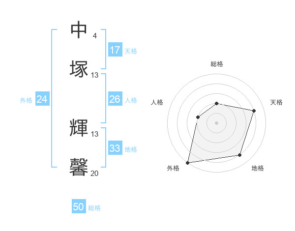 中塚 輝馨さんを姓名の画数から五運を鑑定
