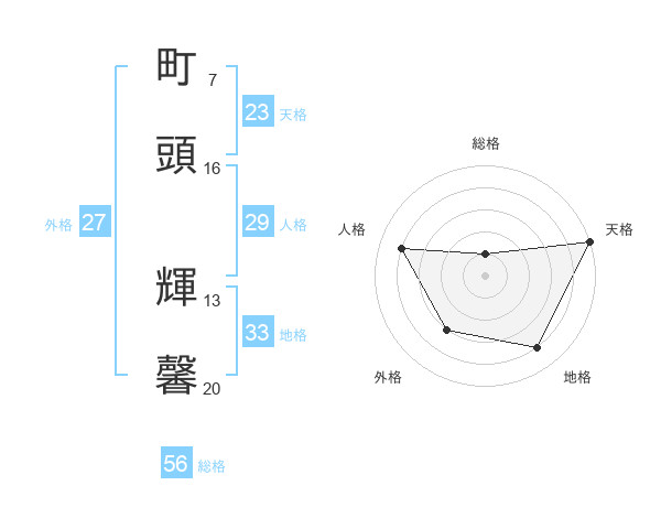 町頭 輝馨さんの天格は23画の5点!