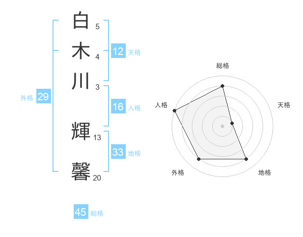 白木川 輝馨さんの総格は45画の4点!