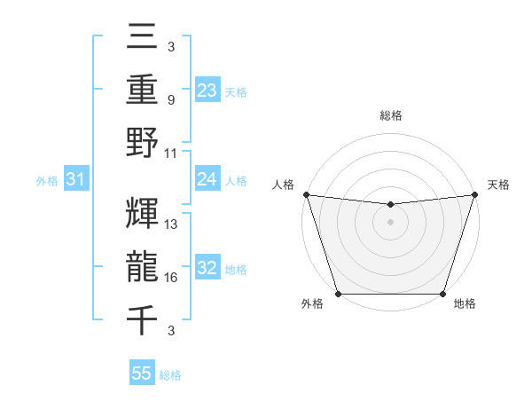 三重野 輝龍千さんを姓名の画数から五運を鑑定