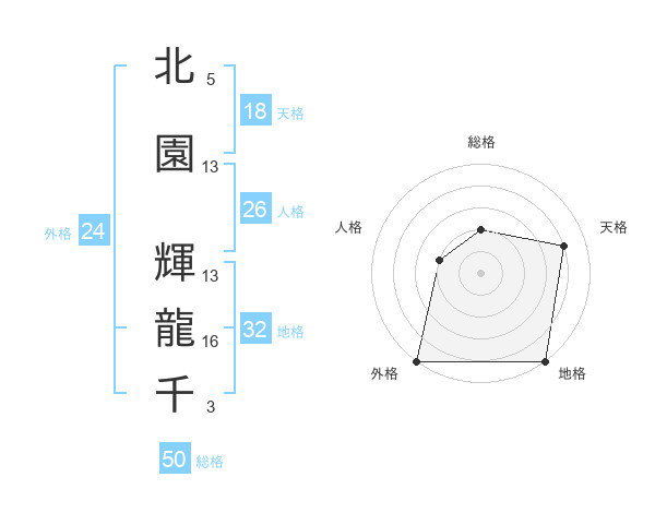 北園 輝龍千さんを姓名の画数から五運を鑑定
