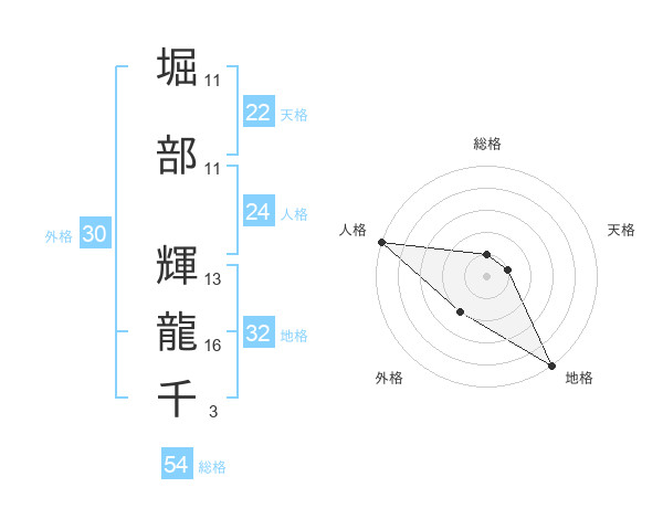 堀部 輝龍千さんの総格は54画の1点!