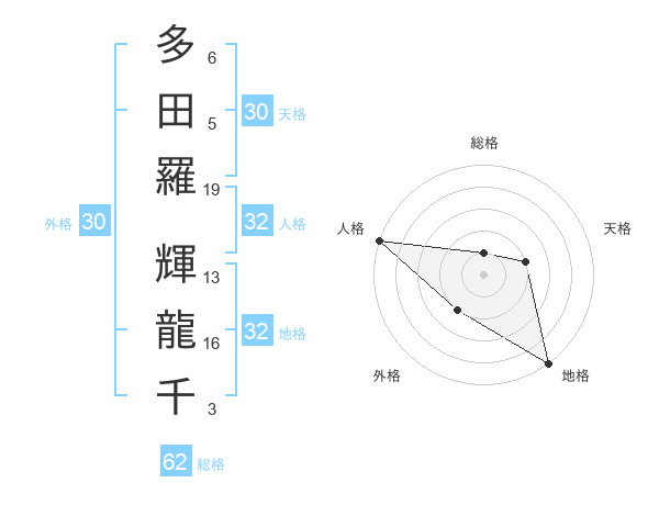 多田羅 輝龍千さんを姓名の画数から五運を鑑定