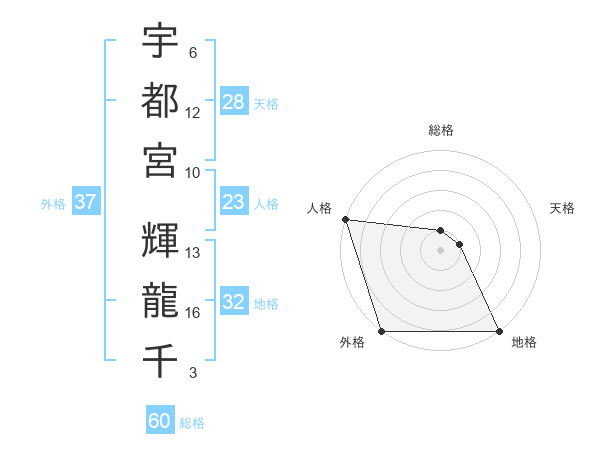 宇都宮 輝龍千さんを姓名の画数から五運を鑑定