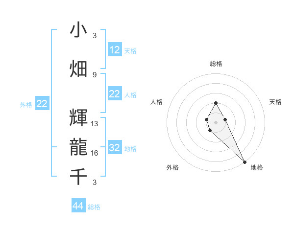 小畑 輝龍千さんを姓名の画数から五運を鑑定