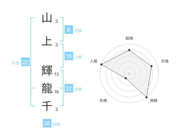 山上 輝龍千さんの総格は38画の4点!