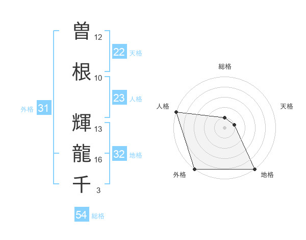 曽根 輝龍千さんを姓名の画数から五運を鑑定