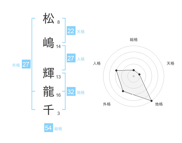 松嶋 輝龍千さんを姓名の画数から五運を鑑定